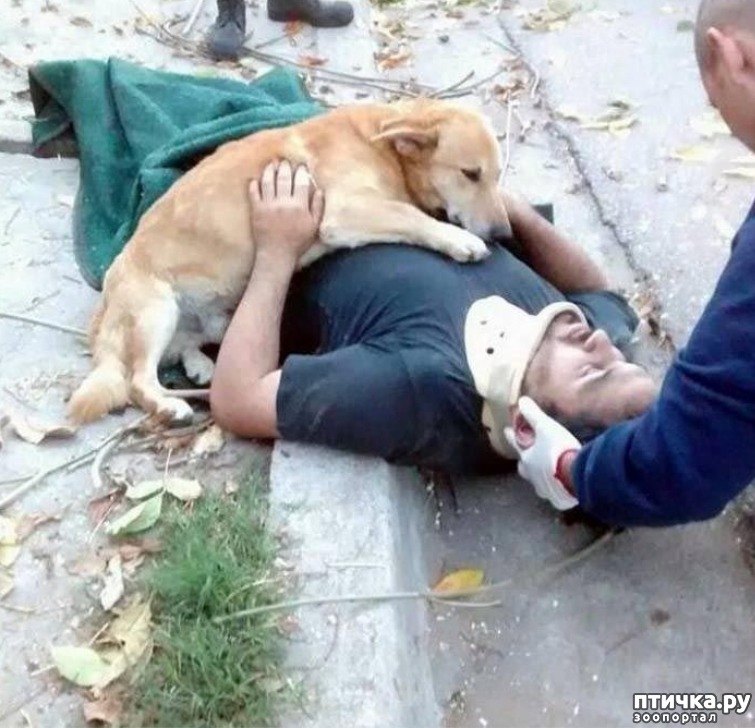 Бедный, бедный преданный друг, он не хочет отпускать своего пострадавшего хозяина, его не могут оторвать от мужчины, чтобы транспортировать на скорой в больницу. Это ли не показатель любви и верности? Это ли не показатель того, что у собак присутствуют те же качества, что у людей. И, возможно, их чувства ещё более существенны, нежели у людей.