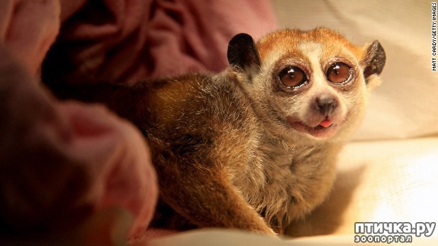 Невероятно большеглазый лори родом из тропических джунглей Юго-Восточной Азии и отличается такими плюшевыми на вид, но сильными лапками. Лори может висеть на дереве несколько часов, держась лишь одной конечностью. И часто так делает. Однако, не смотря на свой невероятно милый вид, это животное ядовито. Яд поступает из желез в локте и впрыскивается через зубы. Однако, он недостаточно мощный, чтобы спасти лори от незаконной торговли домашними животными. Поэтому зверек занесен в Красную книгу.