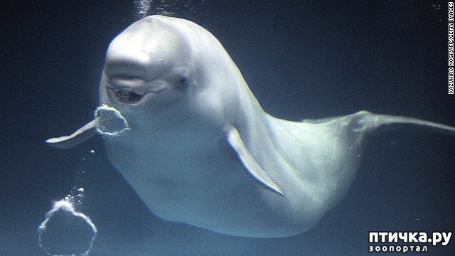 Около четырех метров в длину, белая, с детским лицом, белуха, обитающая в холодных морях Арктики, составляет примерно одну пятую размера синего кита. Со своим относительно небольшим размером, оригинальной мордочкой и шишкой на лбу, белуха, несомненно, очаровательна. В неволе белуха может чирикать по команде и пускать мыльные пузыри.