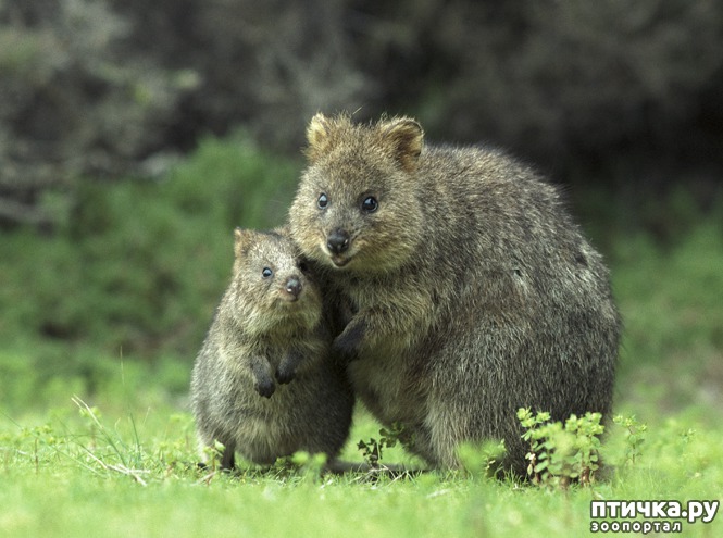 Этот трогательный зверёк настоящая сумчатая улыбака! Мордочка у него имеет такой вид, словно квокка все время улыбается. Живёт чудо природы в Австралии, которая, как известно, вообще богата на сумчатых. И если раньше большой популярностью в этой стране пользовались кенгуру, то сейчас квокка отвоевала пальму первенства. Всё дело в её любви… к сэлфи. Квокка - животное крайне дружелюбное, абсолютно не боится людей и с удовольствием снимается на самые современные гаджеты. Внешне квокка очень похожа на кенгуру. Что касается размеров, она не очень крупная. Её можно сравнить с домашней кошкой или небольшой собакой. Имеет буро-серый окрас, густой и короткий мех, длинный хвост. Так же как и все сумчатые, квокка предпочитаетпитаться листьями и травой, а жить - в тени деревьев, поближе к влаге.