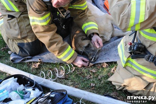 Но нигде ее не было. Собаку же почти сразу вынесли на воздух и дали кислород, поскольку она слишком сильно надышалась дымом.