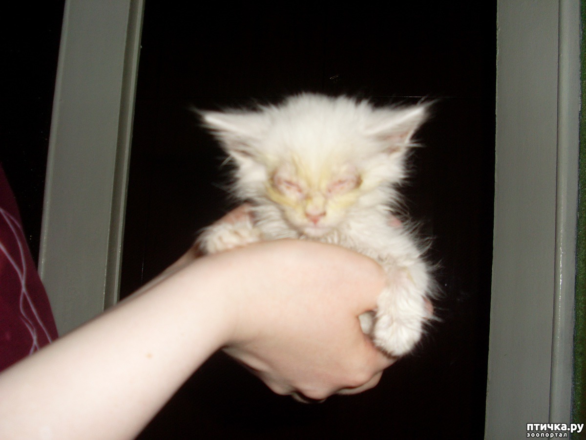 …В полуразрушенной пристройке в старом бордовом кресле возлежала прынцесса. А по полу и столам каталось пять белоснежных комков (с кем бы Снежка не предавалась греху любострастия, все ее блудни неизменно рождались белыми, как невинные ангелы небесные). Кстати, белая прынцесса впоследствии была предана анафеме, отлучена от пайки и увезена обратно на озера за то, что тайком справила малую нужду в кресло архипастыря, куда он и опустил свои почтенные телеса. Вздохнув, я стала отлавливать шкодных комков и обрабатывать им глазки раствором альбуцида. Снежки шипели и вырывались из рук. Всего я насчитала пять штук громадных для своих двух месяцев котят. Я уже собралась уходить, когда услышала тихий шорох за строительным ларем. Сначала я не обратила внимания, но шорох повторился. Я заглянула туда и увидела нечто – вонючий грязный ком неопределенной субстанции. Непропорционально большая голова застряла между стеной и ларем, крошечное тельце было безжизненным и холодным. Я вытащила уродца и положила его на стол. Кроха явно был не жилец – шерсть слиплась от сукровицы, текущей из больших эрозий, покрывавших его голову, шею и живот, глаза полностью затекли зловонным желто-зеленым гноем; гной тек из ушей. В довершение всего, бедняга был практически полностью парализован. Кухарка принесла мне ведро с теплой водой, которая через пять минут стала черной от грязи и блох, покрывших ее поверхность. Затем я завернула беднягу в кусок тряпки, найденный тут же под столом и положила его в ведро от шпаклевки. В таком виде он прибыл домой. Сказать, что у домочадцев был шок – значит, не сказать ничего. Мало того, что котишка просто отталкивал своим уродством, выяснилось, что я принесла его в куске старого церковного облачения, что вызвало шок у моей воцерковленной и благочестивой маман. Ко всему прочему, на тот момент дома и так был зверинец, состоявший из трех кошек и пуделя.