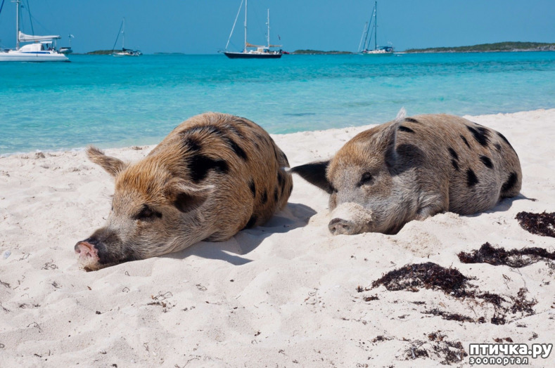 Как эти животные появились там никто не знает. Многие считают, что их кто-то специально завез сюда, чтобы превратить это место в достопримечательность. Есть еще пара версий: свиней перевозили на корабле, который потерпел крушение, животные выжили. Другая звучит так: пигов здесь оставили моряки (странная версия, но все же), они сначала планировали перевезти груз, а потом вернуться за животными, но что-то пошло не так. Первая история звучит правдоподобнее.