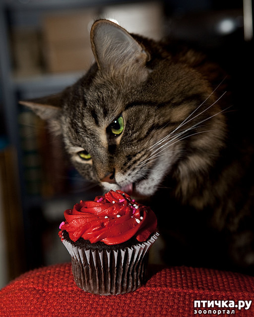 Полосатый котик, кексик шоколадный с розовым (пусть будет вишневым) кремом, маленький и фкусненький.... и интерьер