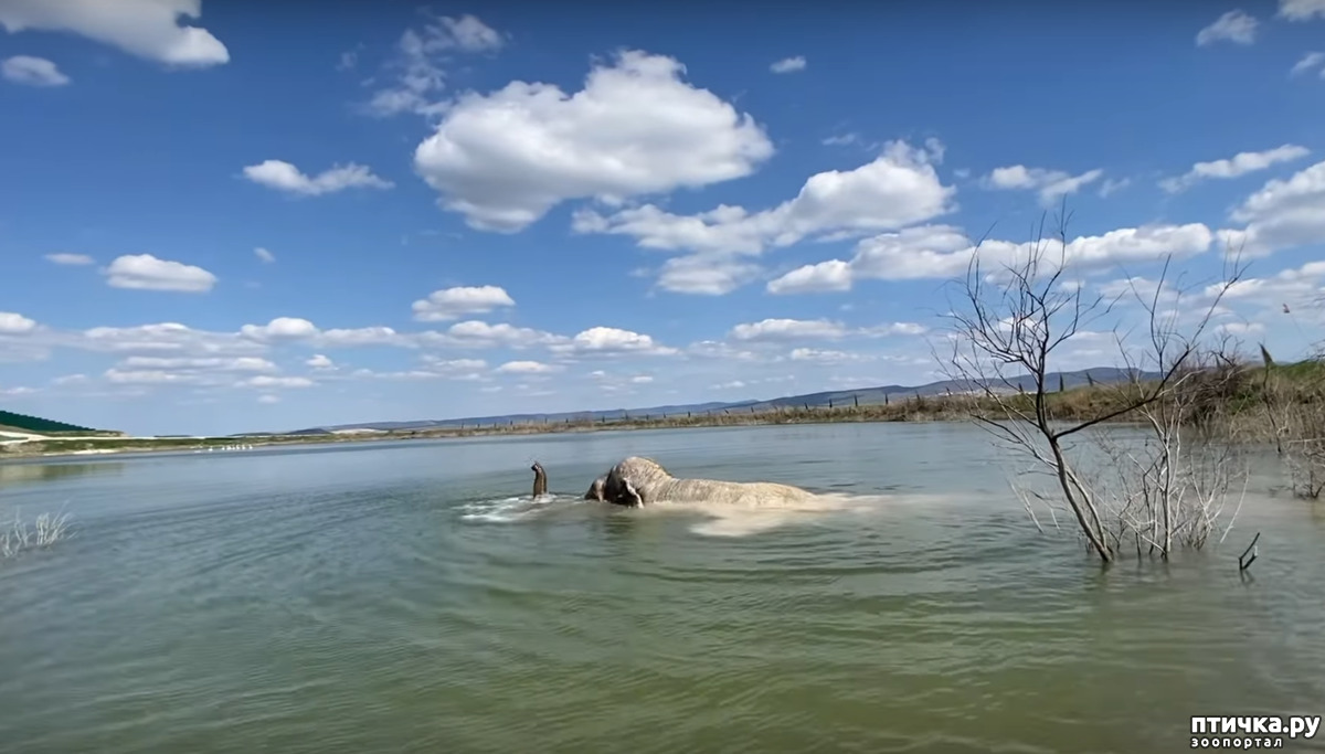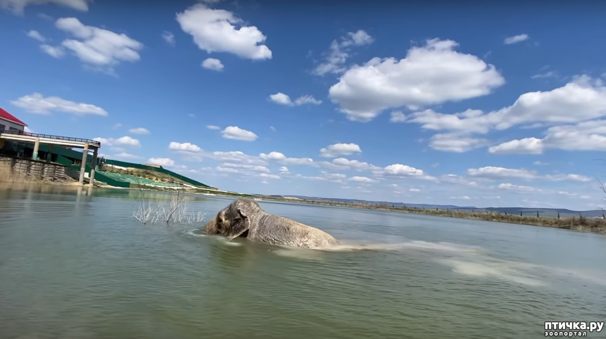 Потом всё же слониха стала плавать и нырять с огромным удовольствием