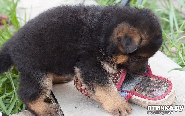 Пошли мы как то в посёлковый магазин и щенка с собой взяли. Тольковышли за калитку, как к нам бросилась соседская овчарка. В принципе подскочила она к нам, так, без особой агрессии, но наш питомец сразу юркнул в дырку под забором и метнулся в дом. Ну, понятно, подумали мы, испугался большой собаки. Но не тут то было. Смотрим несётся наш щенок обратно с тапками в пасти. Правда, в дырку под забором пролезть обратно не смог, тапок мешал. Но очень возмущался, злился и тявкал. Он видимо хотел, что бы хозяин хорошенько отшлёпал тапками большую собаку, за то, что что она себя плохо ведёт.