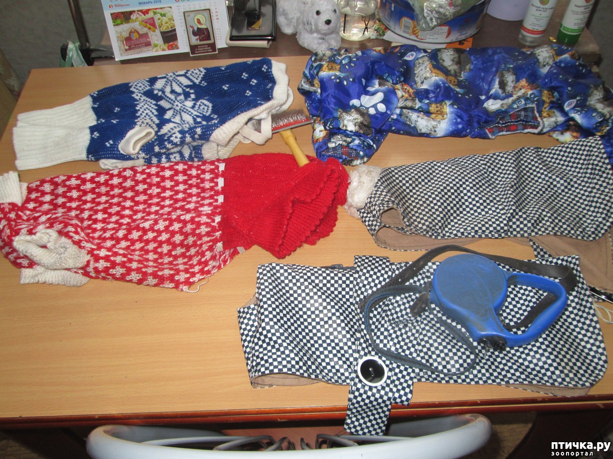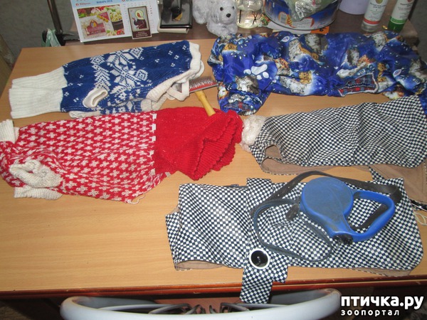 Моя любимейшая собака Джой ( по выражению папы) "сростил шерстищу" и отказался зимой и в любое другое время года носить комбинезоны, свитера и любую другую одежду. Посему предлагаю москвичам в подароквсю нашу одежду. Район Восточное Дегунино. Пыталась поместить в рубрику "Объявления", но там только бесплатно животных предлагают. Рубрики "одежда" нет. Комбинезон синий в правом верхнем углу - новый, только на съёмки в помещении надевал на 20 мин.