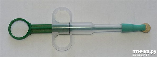 Всё, кошку пеленаю, левым локтем (если я одна, придерживаю кошку, левой рукой чуть нажимаю на челюсти снизу, по бокам, чтобы немного приоткрыть рот. Правой рукой впихиваю кончик таблеткодавателя с таблеткой сбоку и поглубже в рот. Держу его как шприц: два пальца (указательный и средний) вдеты в кольца, по бокам, а большой палец в зелёное кольцо.