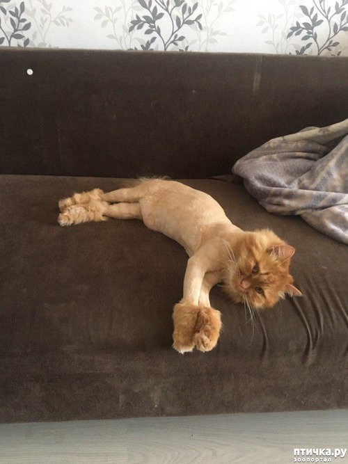 В пятницу постригли Машу, рвота шерстью и кормом, плохой аппетит, начала вычёсывать шерсть во все стороны летит и много, поняла, что не справлюсь с линькой ( на стрессе после гостиницы что ли), тридцать минут и у нас сфинкс.