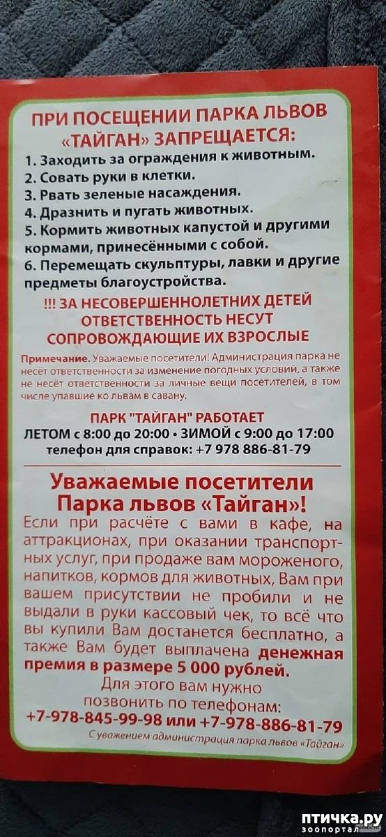 Прошлой осенью одна нерадивая мамаша, перенесла своего годовалого сына через отжимной барьер что бы выполнить фотосессию. Прижала сына к решётке вольера с тигром. Тигр повредил палец малыша. От медпомощи, вызова Скорой гражданка отказалась и поехала в Симферополь. Фалангу пальца пришлось ампутировать.
