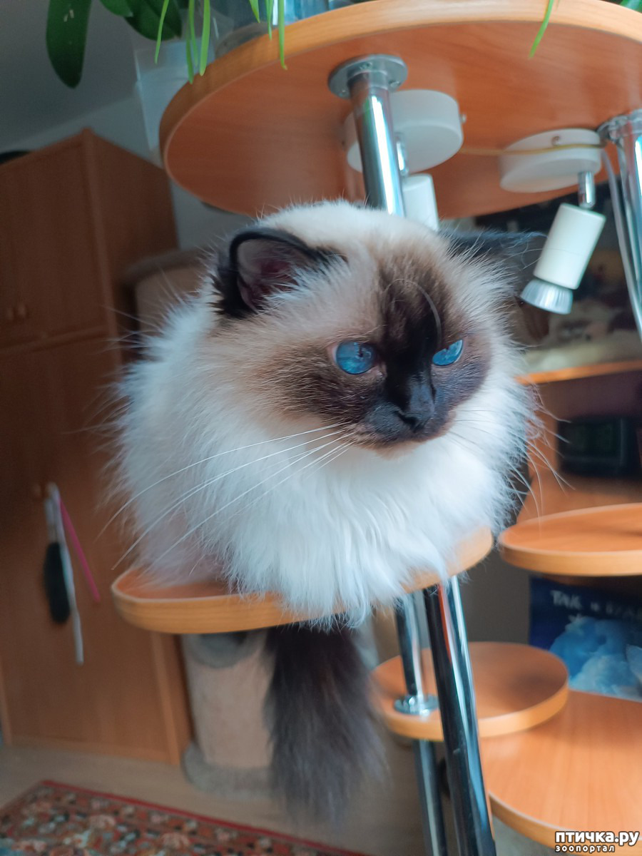 Она могла быть и абиссинкой, и невской маскарадной, и уличной по ряду причин и совпадений, но оказалась бирманкой, Священной бирмой с одним гольфиком на задней лапке вместо двух, как положено. Историю породы лучше не читать, одни домыслы и предположения, стандарт по размерам разный: могут быть крупные кошки, а может и мелочь пузатая. Одно неоспоримо - здесь много крови сиамов, достаточно своевольных и настырных кошек, тщательно выбирающих себе хозяина, и всегда готовые его защитить, если им показалось, что ему что-то или