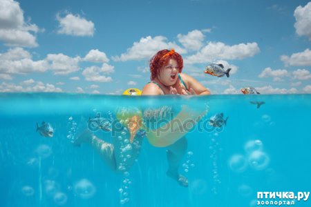Он - плавает рядом, вооруженный маской, трубкой и подводным ружьем, воображает себя Жаком Кусто, охотится за селедкой.