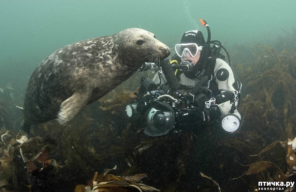 Пих-пах, стырив наконец нечто плохолежащее, удаляется в сторону будки для принятия душа. Она продолжает качаться на волнах, наслаждаясь ласковым теплым морем, соленым морским ветерком. В это время чувствует нежное прикосновение к эр@тичным филейным частям своего тела, погруженным в воду.- Васи-и-илий. Что ты делаешь, - игриво произносит она. Через некоторое время прикосновение повторяется, но уже настойчивей.- Васи-и-ли-и-й. Щекотно. Метpaх в тридцати выныривает Василий и радостно машет ей добытой худосочной селедкой. Она в недоумении оборачивается. Из воды торчит здоровенная серая с темными пятнами мордень с огромными усищами, торчащими в разные стороны, и весело перемаргивается черными блестящими глазами.