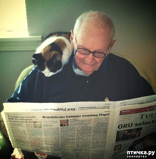 С тех пор, как его жена умерла, кошка не оставляет его ни на минуту.