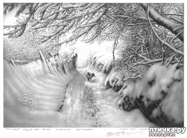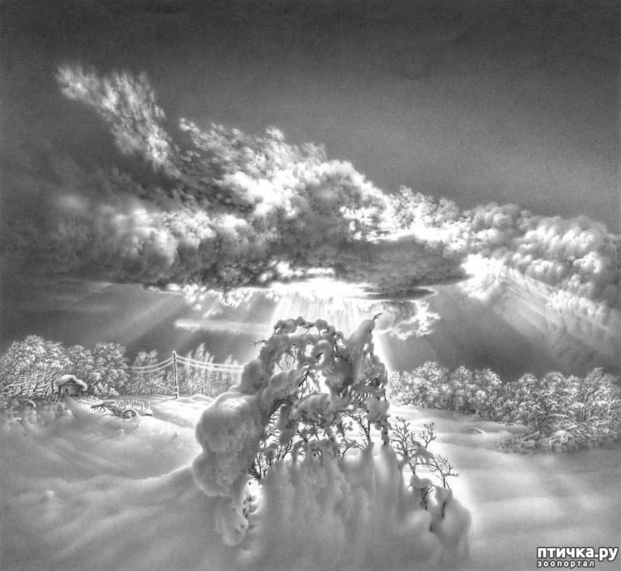 Невесомые карандашные полоски покрывают бумагу, словно тончайший шёлковый шарф. Игра света и тени, бликов и объёма бросает вызов даже самому избалованному глазу. На картинах художника пушистый снег словно флиртует с лёгкими облаками, а нежные сумерки будто заботливо присматривают за ними. Кажется, что протянешь руку, и пальцы обожжёт приятный холод. Но обожжёт ласково.