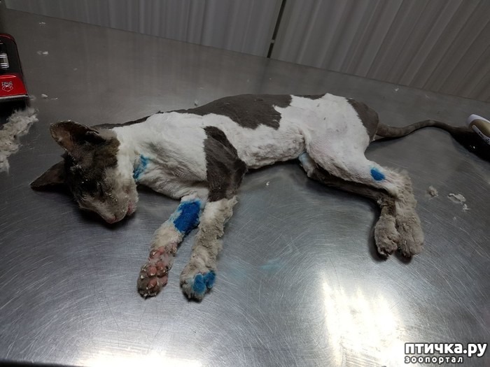 Кошку неравнодушные жители привезли в ветеринарную клинику. Стригли животное под наркозом около двух часов. Серьезных травм она не получила.