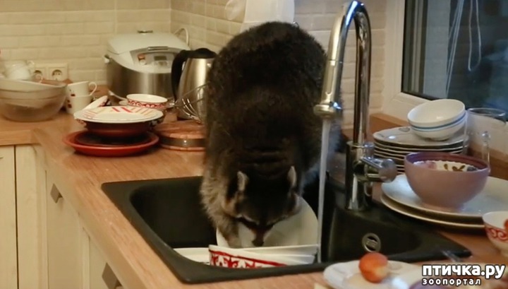 Как выяснилось при детальном рассмотрении, в раковине сидел енот-полоскун. Вернее, животное не сидело, сложив лапки, а рьяно перемывало посуду, правда, без моющего средства. Хозяева дома могут только догадываться, откуда енот взялся в их кухне, потому что это не совсем типичный для Казахстана зверь. Домочадцам удалось снять на видео кипучую деятельность незваного гостя и выложить ролик в Сети. Можно заметить, с каким удовольствием енот моет посуду, при этом не придавая большого значения аккуратности – некоторые тарелки оказались разбиты.