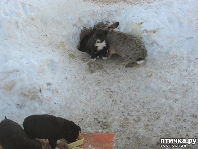 В Омской области кролик спас щенков и заменил им убитую собаку