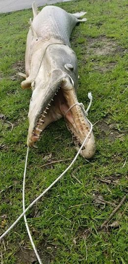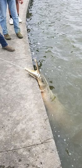 Огромного миссисипского панцирника достали из озера работники парка Лафреньер в Новом Орлеане. Мертвая рыба стала распространять жуткий запах, отпугивая посетителей.