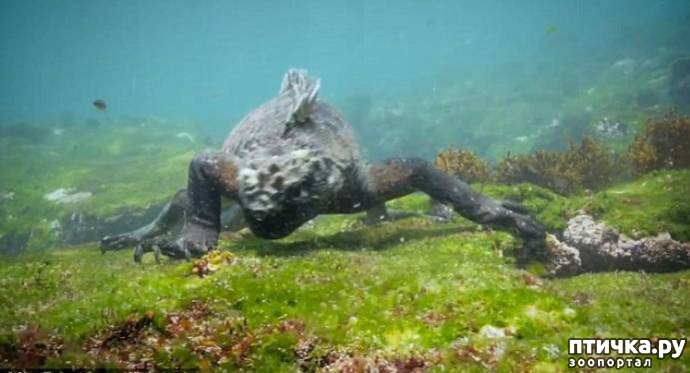 На кадрах видно, как морской монстр поедает водоросли, не обращая внимания на людей. Периодами игуана всплывает к поверхности, чтобы запастись воздухом, а потом опять погружается и ищет себе еду.