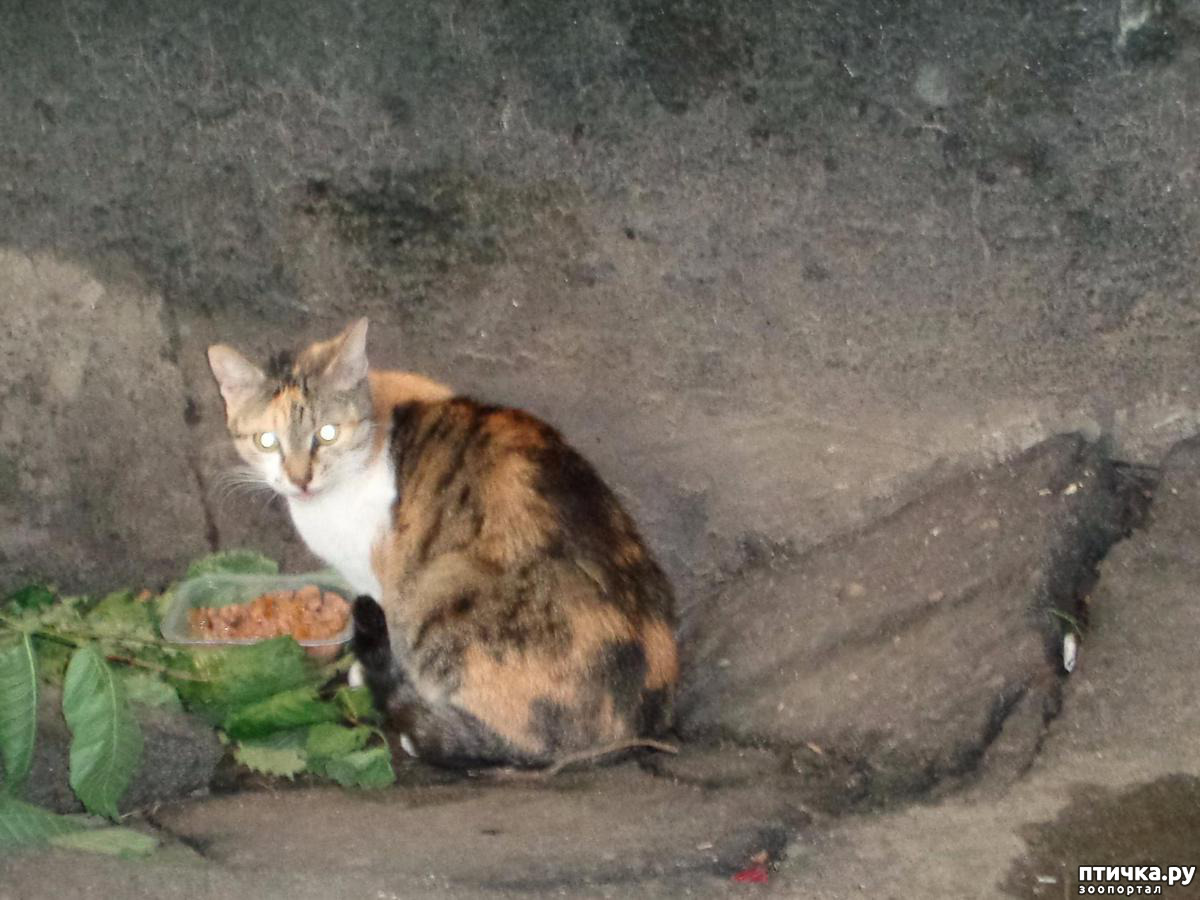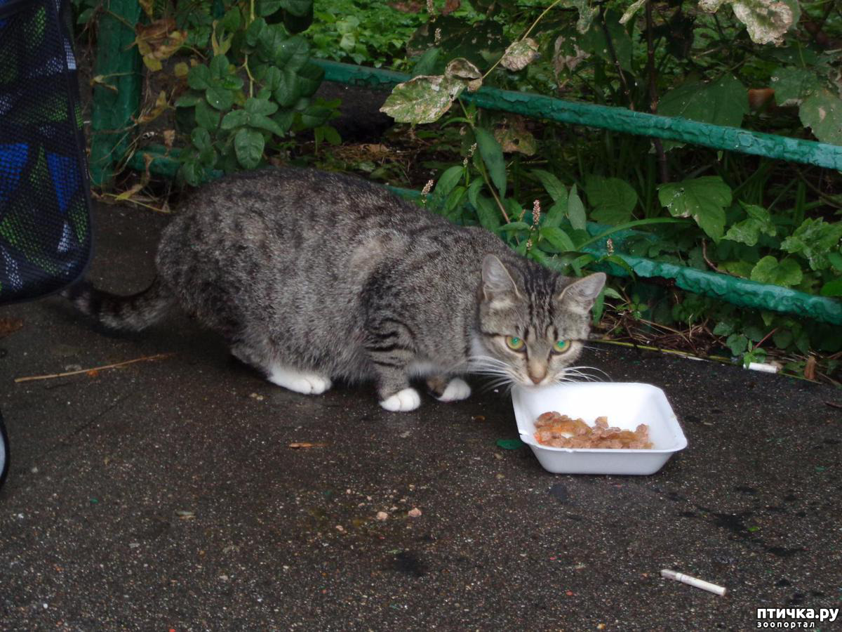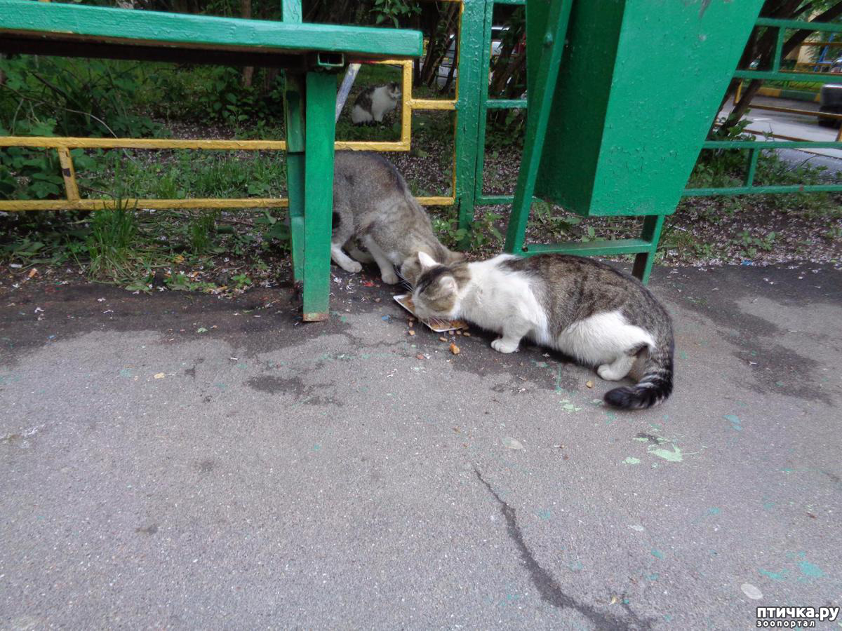 Пришли на место. Пересчитываю по головам, еле видным в полутьме, выкладываю посуду, разливаю похлёбку. Некоторые сразу начинают есть, другие пребывают в раздумье: понюхав свою порцию, решают проверить, что дали соседу. Сосед, недовольный такой бесцеремонностью, бросает есть с с возмущением смотрит на нахала, замахивается лапой. Потом соображает что-то, оставляет свою плошку захватчику и бежит к освободившейся. Наконец а время устанавливается видимость порядка и наступает тишина, нарушаемая только ласкающими слух звуками «шлёп-шлёп» маленьких язычков. Нет, не подумайте, что у нас такой тихий двор, что только этот звук и слышен. Звуков вокруг хватает: от шума проезжающих по улицам машин до голосов из открытых окон и гогота компании, расположившейся в палисаднике в центре двора. Но все они воспринимаются как обычный городской фон.