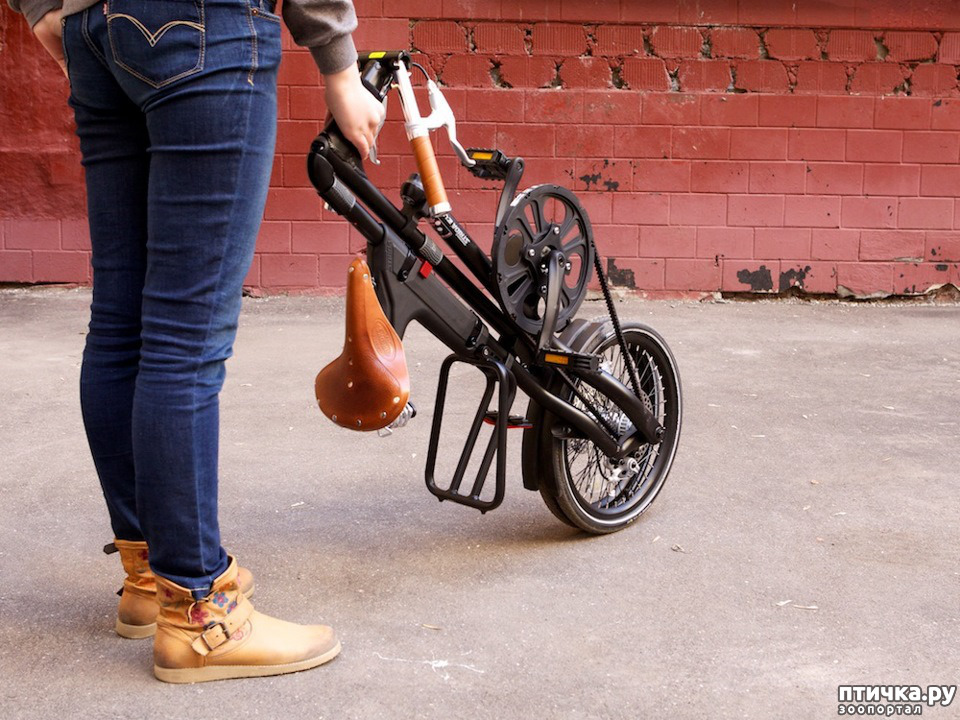 А вот велик. Вместо вилки изгиб и крепеж колеса с одной стороны.