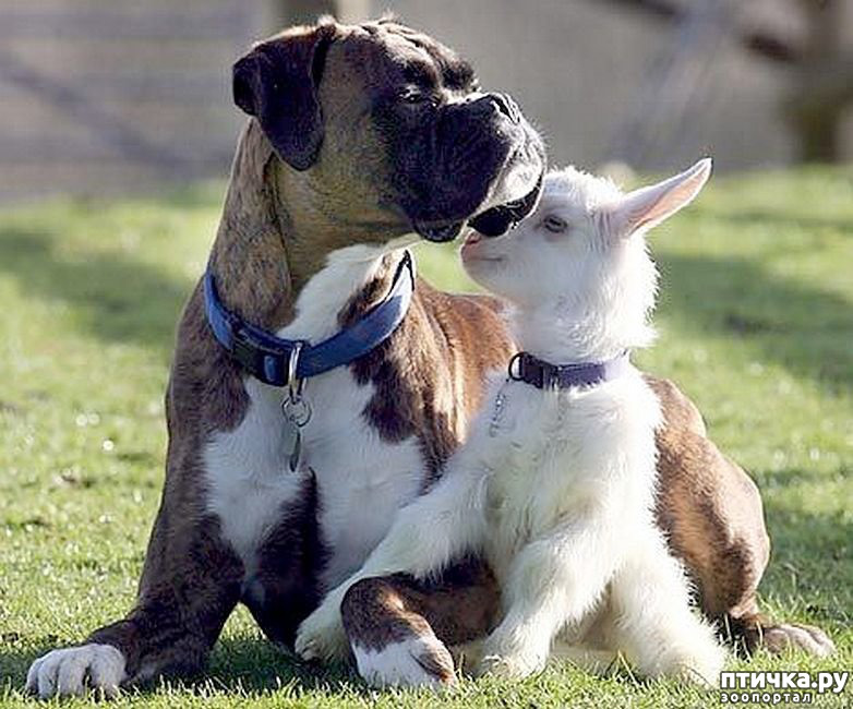 * Подобрали умирающего козленка пяти дней от роду, выкормила из бутылочки, росла она с нашими четырьмя собаками. Коза выросла, но искренне считает себя собакой. Все повадки собачьи. Так и живем: собаки, которые при опасности прячутся за козу, и коза, искренне верящая, что она алабай.