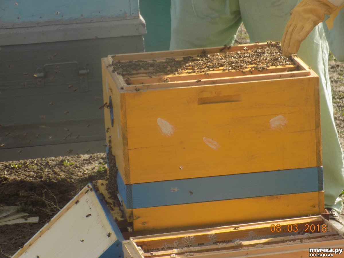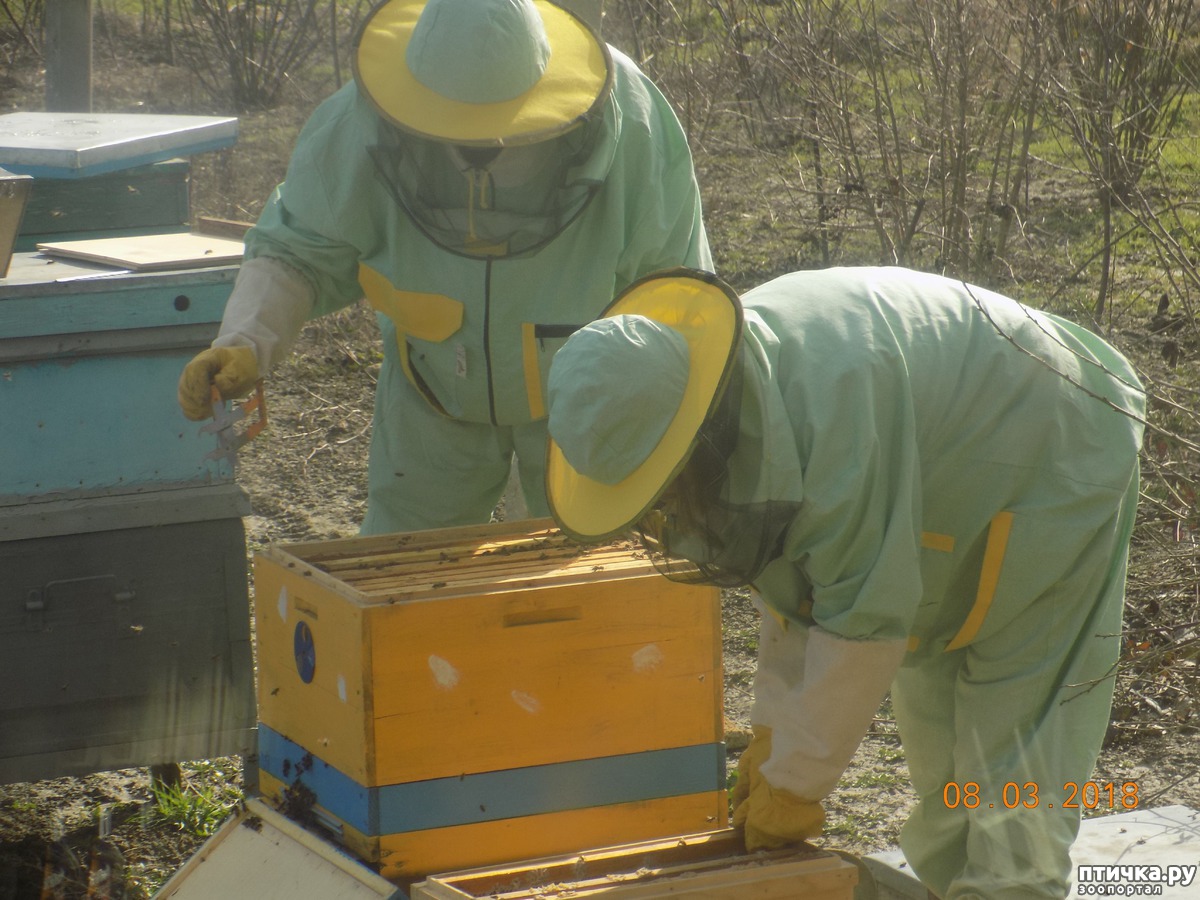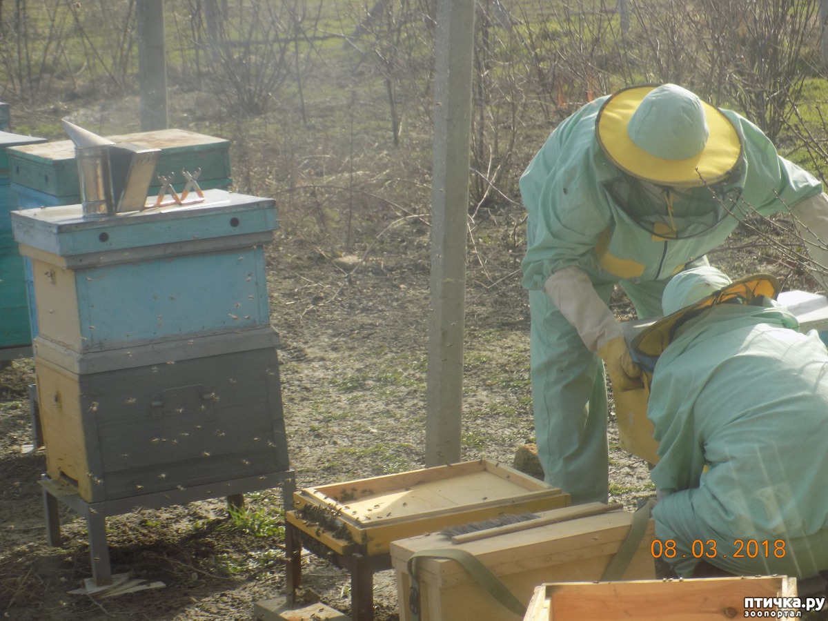 Ну, расскажу ещё вам об одном интересном моменте из вчерашней хроники. У нас на участке есть небольшая пасека 10 ульев. так вот, вчера, не взирая на праздник, мои молодые пчеловоды решили для начала заняться делом. Дело в том, что за зиму пчёлки съели весь мёд, который у них в зиму не отбирается, а оставляется для подкормки. Нужно было срочно загрузить в ульи свеженькую в виде сладкого сиропа, смешанного с мёдом. А для этого необходимо было вскрыть поочерёдно все ульи.