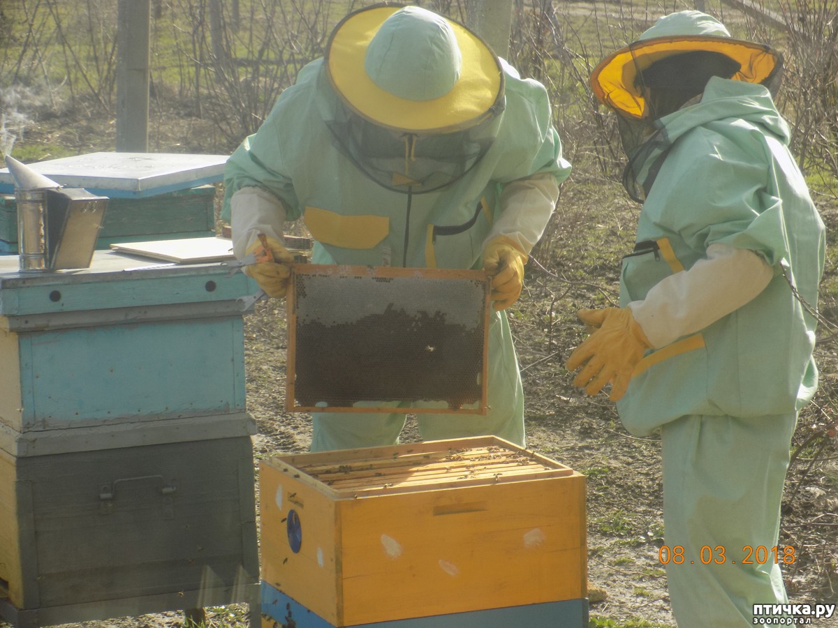 Ну, это мои пчеловоды, одевшись в специальные костюмы, приступили к работе.