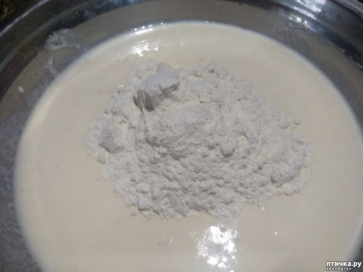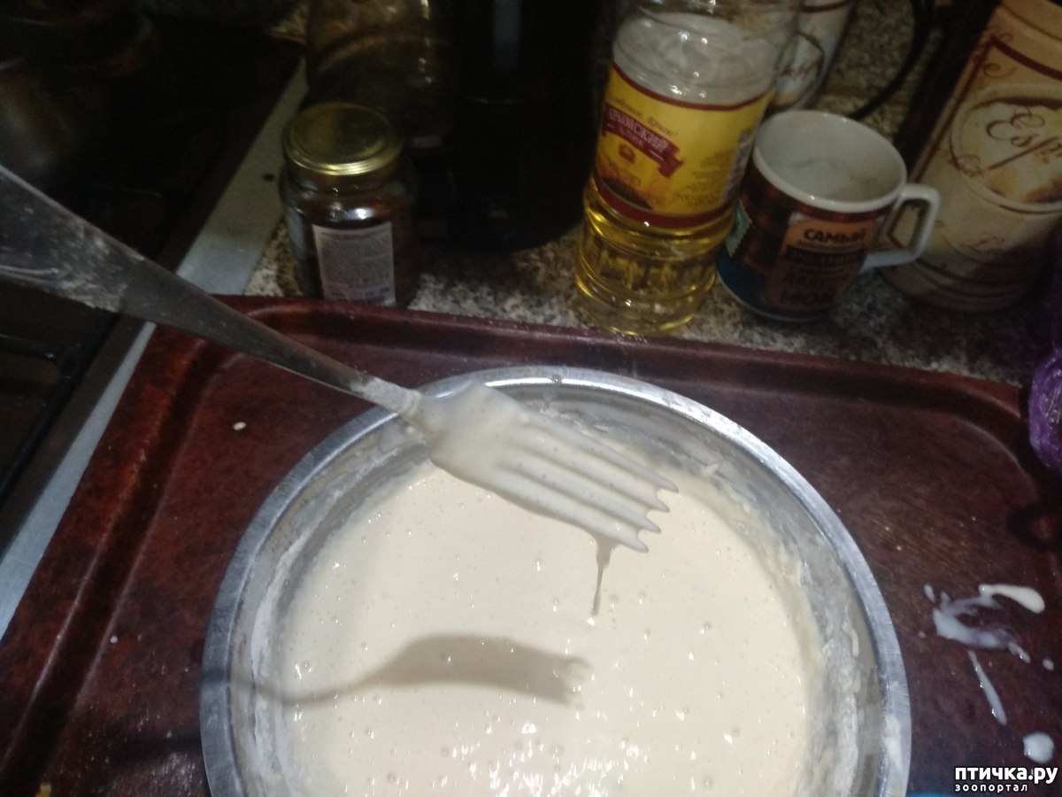 Теперь ввожу муку до консистенции не очень густой сметаны. Перемешала и ввела соду, погасив её уксусом.