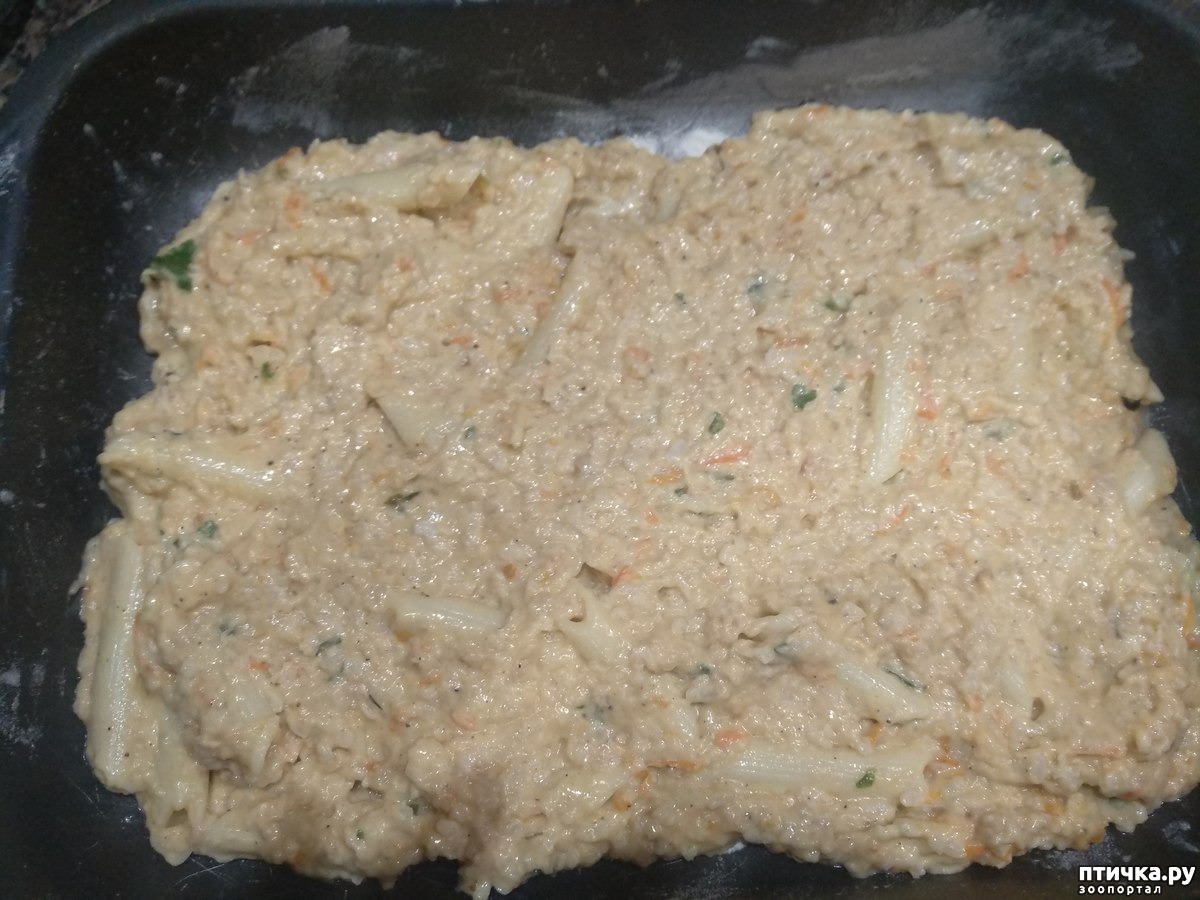 Далее, на смазанный раст. маслом противень выкладываю рис с макаронами. Это будет нижний слой пирога.