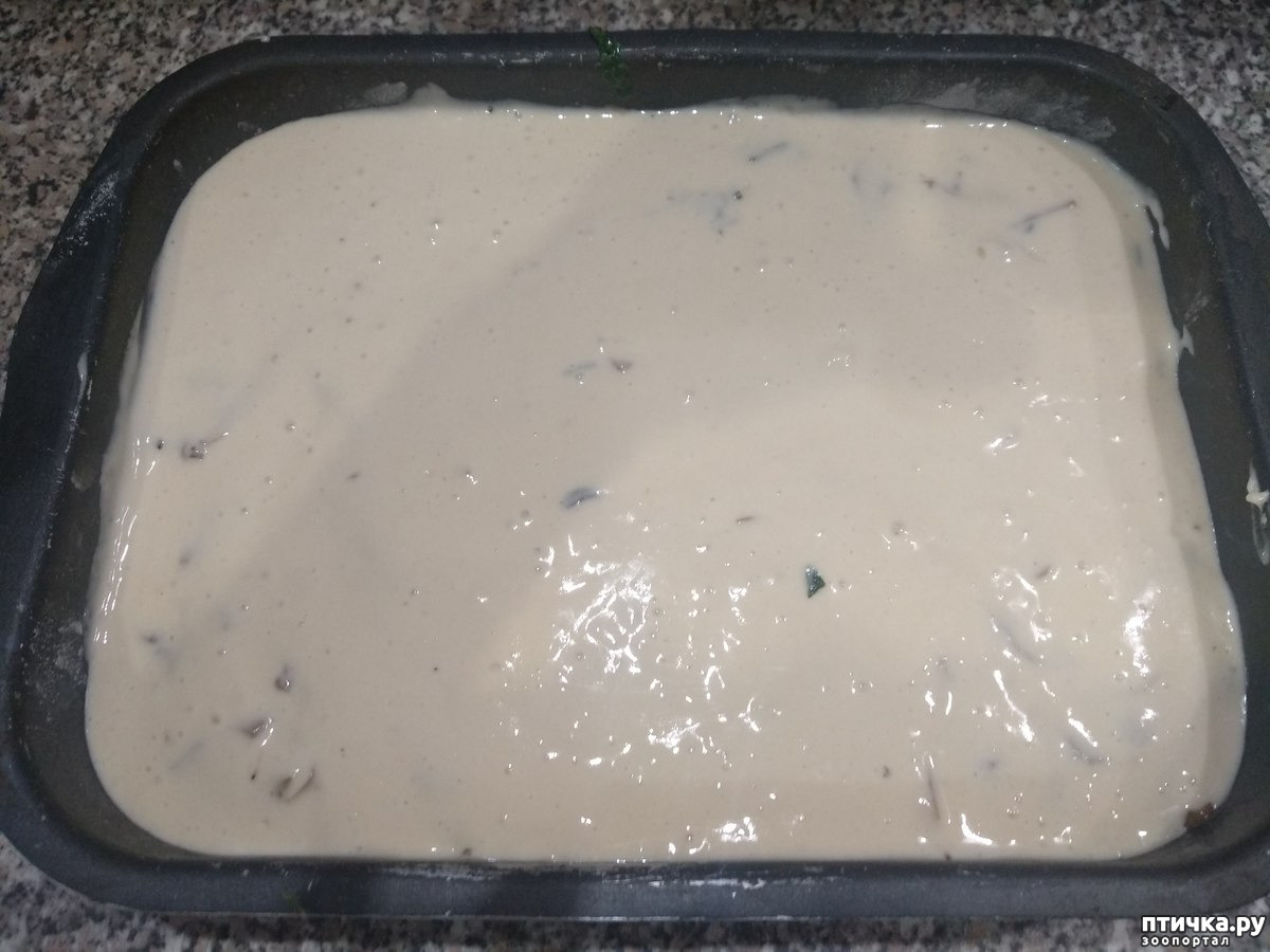 Заливаю сверху тестом. В разогретую до 180 градусов духовку отправляю противень на 35-40 минут. Готовность, как всегда, проверяю деревянной палочкой.