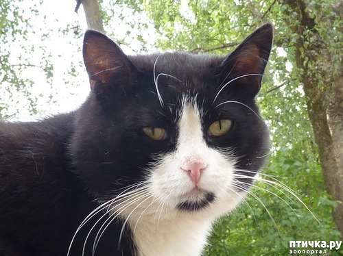 Знакомьтесь-Василий! Ну наверное Василий) Летом я работала в парке. Скажу вам что недобросовестные заводчики частенько сбывают туда своих питомцев. Бросил, авось добрые тёти накормят. Тёти и стараются... Ну это было вступление. Прекрасен май и кошек море, деятельность бурная, только корми. И вот где то неуловимой тенью проходит ОН. Обходя мимо, грустный, подранный, побитый жизнью, видимо ни кому не доверяющий. Я догоняла его в кустах, заманивала едой, он подбегал, хватал и нёсся через заборы, то с рыбьей головой в зубах, то ещё с чем то что было предложено. Подруга брезгливо ворчала"Ну чего ты какого то бомжа кормишь?" "Надо помочь выжить" -говорю. Мы стали общаться. Я звала его Вася, он был не против. Потом появляться стал регулярно, по утрам, ел, ни говоря ни чего разворачивался и уходил куда то, наверное в грядущее.. Я думаю сама с таким характером я выбираю и таких зверей и они меня принимают. Позже он приходил и садился у дверей, не заходя даже в открытые -ждал.. Когда увидев я кричала -Васенька пришёл Вася! Он как буд то слегка улыбался, принимал еду. Стал разрешать мне гладить его, а потом и брать на руки. Как он может любить своим мужским кошачьим сердцем! Вдавливаясь в мои руки кладя голову в ладонь, а она у него огромная, щёки мясистые, мурча с закрытыми глазами, перебирая могучими кулаками. Он чувствует мой настрой. Я тискаю его и вот надоедает и я говорю подруге, хватит наверно, тяжёлый.. Он тут же спрыгивает с рук и не поворачивая головы уходит. Вася, Вася ты чего? А он лениво повернётся, как бы говоря, да слышал я всё и уходит в даль. За лето он отъелся, шерсть стала хорошей, морда круглой и он перестал так сторониться людей. Теперь парк опустел. Атракционы сократили свою работу. Но Вася стал импозантен и нравится, а не внушает брезгливости. Его стали подкармливать и без меня. Я очень рада. Но мы иногда встречаемся и он бежит ко мне на своих мощных лапах, большой как дикий кот манул-мой Вася, Василий!!! Пусть зима будет не очень суровой Дай Боже всем пережить её!!!