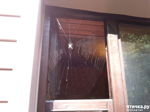 Потом я прочла, что на форточку можно паутину вместо сетки, оригинально. Сделала основу для паутины, на неё посадила паука. а снизу чашку с водой, чтобы не ушёл. Паутиной основу затягивал паук, но когда рамку вставляла в форточку, то он всё же сбегал.