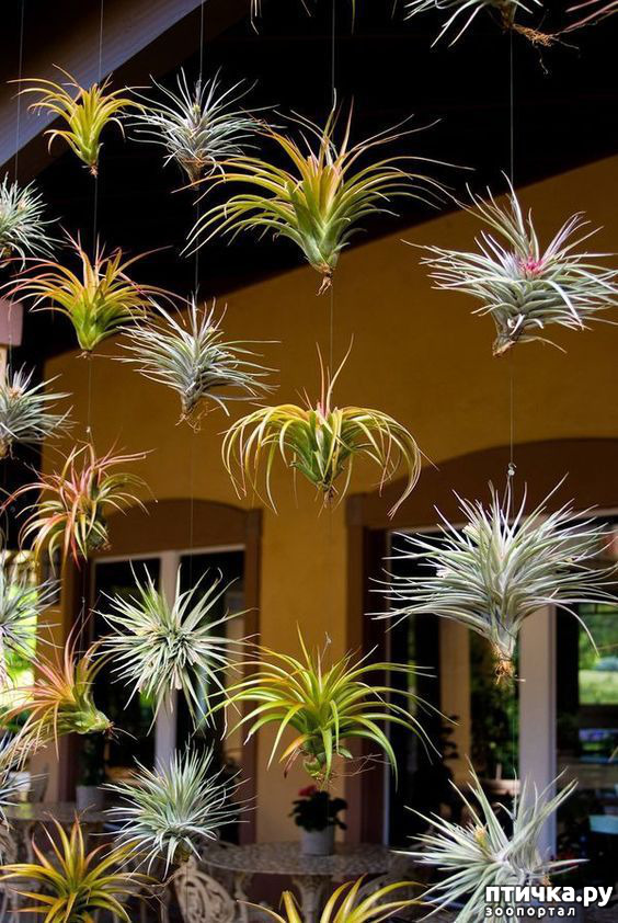 Зелёные тилландсии (мезофитные): предпочитают более затенённые места, чуть более высокую влажность. Их листья часто более широкие и мягкие. Выращивают в горшках с рыхлым субстратом (кусочки коры и т. п.).