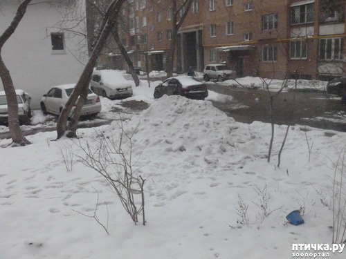 У них на этом окошке наблюдательный пункт за птицами. А тут еще и снег полетел - что-то диковинное для них