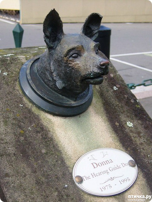 И в австралийском Сиднее-собаке Донне, она занесена в книгу рекордов Гиннесса, как самая долго-живущая собака-поводырь. Она служила верой и правдой своему хозяину Джону Хогану. Скульптор Ian Shaw.